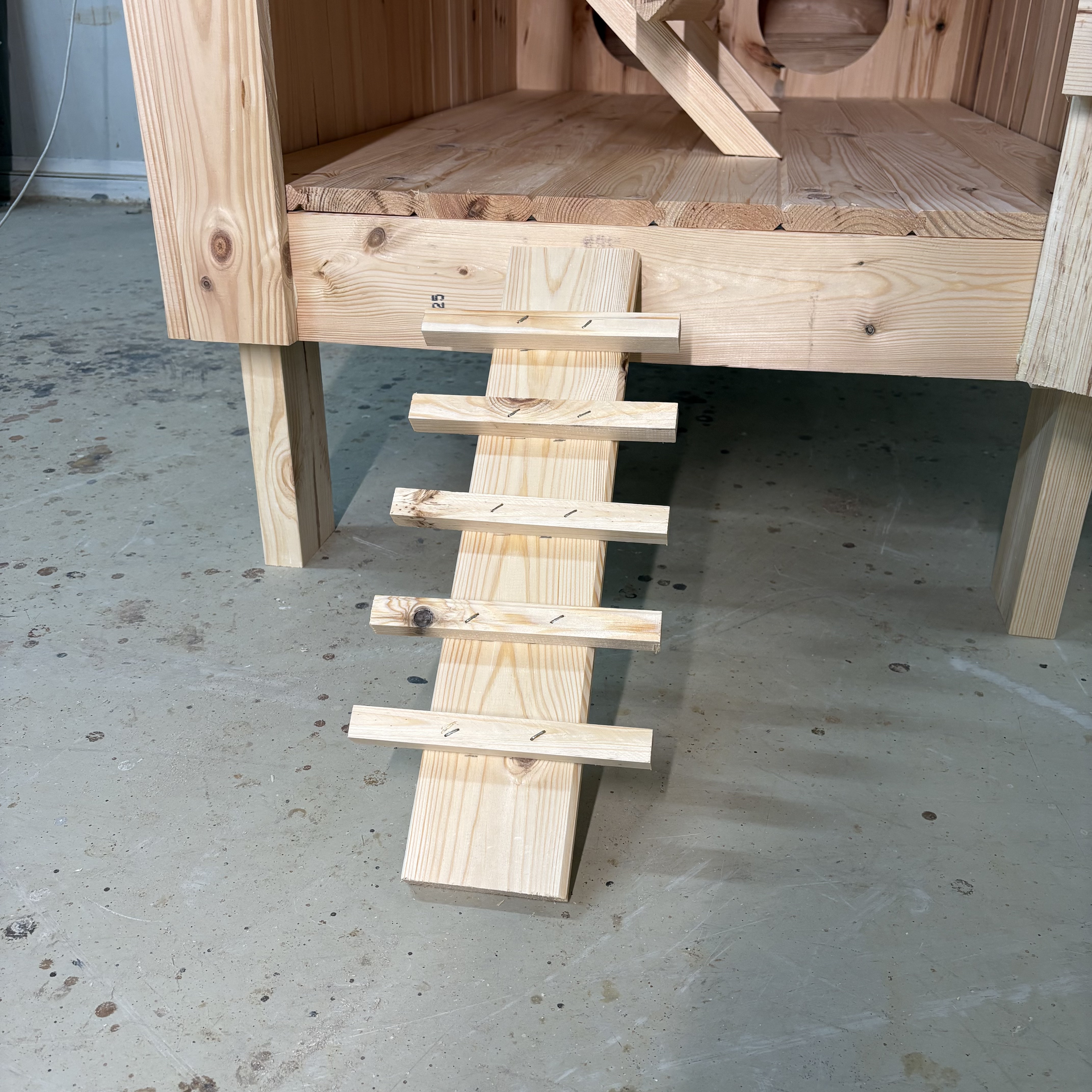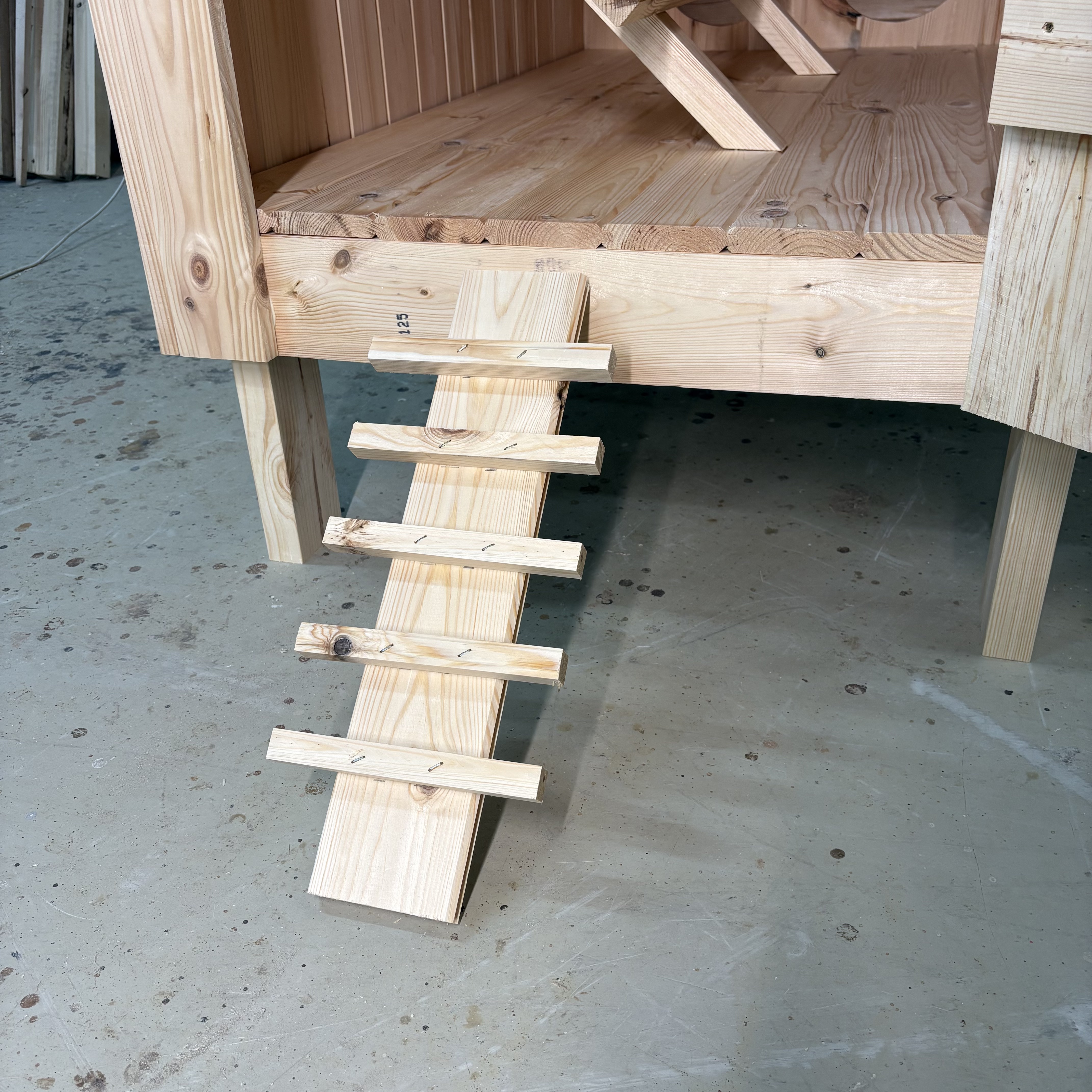 V základní ceně je zahrnuto: kompletní konstrukce kurníku včetně nožiček, venkovní hnízdo na snášení vajec s otevíratelnou střechou, vnitřní vyjímatelný a výklopný žebřík (bidlo) pro komfortní spánek drůbeže, přístupový žebřík a spojovací materiál. Kurník dodáváme ve stavu, který umožňuje okamžité používání.